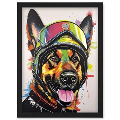 Artery8 German Shepherd Dog Wearing Ski Helmet and Goggles Artwork Framed Wall Art Print A4