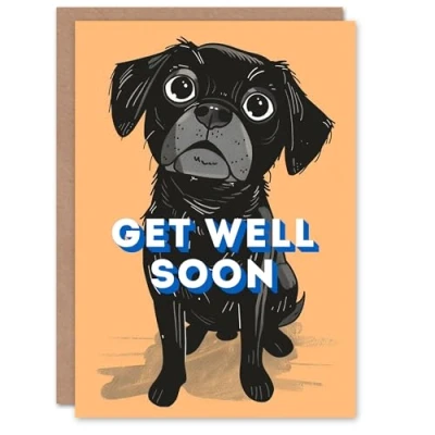 Artery8 Get Well Card Black Dog Lover Cute Labrador Pet Puppy Blank Arty Art All Occasion Greeting