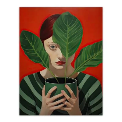 Artery8 Gift of Calathea Woman Plant Portrait Green and Red Large Wall Art Poster Print Thick Paper 18X24 Inch