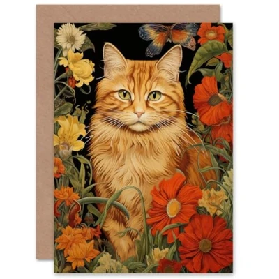 Artery8 Ginger Tabby Cat Lover Floral Spring Flower Blooms Custom Greeting Card Personalised Message Inside for Wife Her Mum Sister Daughter Mom Gran Nan Mothers Day Birthday Thank You