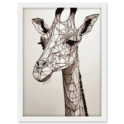 Artery8 Giraffe Head Polygon Line Drawing Illustration Artwork Framed A3 Wall Art Print