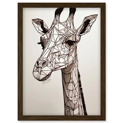 Artery8 Giraffe Head Polygon Line Drawing Illustration Artwork Framed Wall Art Print A4