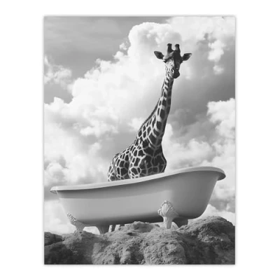 Artery8 Giraffe in Bathtub on a Hill Black White Surreal Bathroom Toilet Extra Large XL Wall Art Poster Print