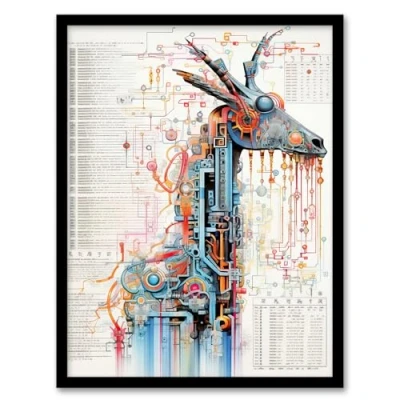 Artery8 Giraffe Robot Hybrid Schematic Blueprint Futuristic Secret Complex Arcane Manuscript Gift For Him Man Cave Artwork Framed Wall Art Print A4