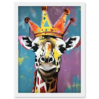 Artery8 Giraffe Wearing a Crown King Queen Modern Pop Art Artwork Framed Wall Print A4