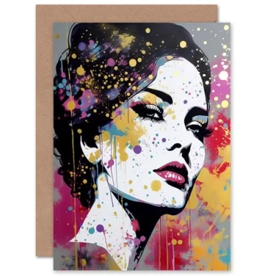 Artery8 Glam Glitter Face Party for Wife Her Mum Sister Daughter Mom Gran Nan Birthday Thank You Congratulations Blank Art Greeting Card