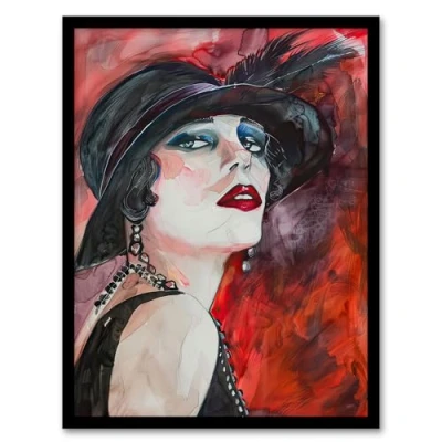 Artery8 Glamorous Flapper Girl Portrait 1920s Scarlet Living Room Artwork Framed Wall Art Print A4