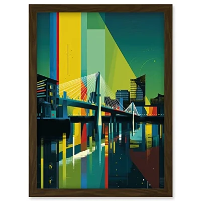 Artery8 Glasgow Bells Bridge Modern Geometric Cityscape Artwork Framed Wall Art Print A4