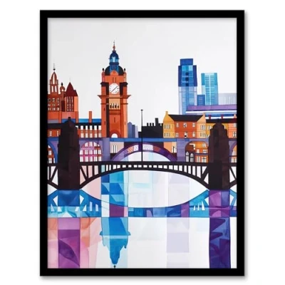 Artery8 Glasgow Colourful Geometric Skyline Cityscape Living Room Artwork Framed Wall Art Print A4