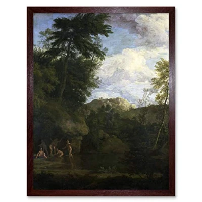Artery8 Glauber Arcadian Landscape Diana Bathing Painting Art Print Framed Poster Wall Decor 12x16 inch