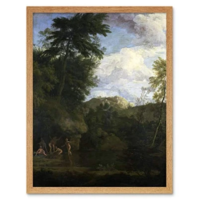 Artery8 Glauber Arcadian Landscape Diana Bathing Painting Art Print Framed Poster Wall Decor 12x16 inch