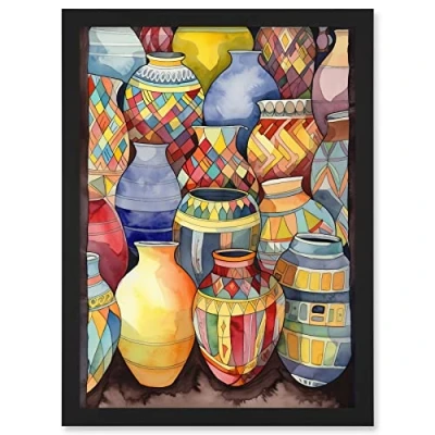 Artery8 Glazed Ceramic Pot Vases Folk Art Artwork Framed A3 Wall Print