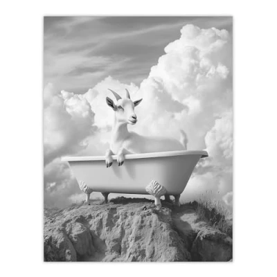 Artery8 Goat in a Bathtub on Hill Black White Surreal Bathroom Toilet Extra Large XL Wall Art Poster Print