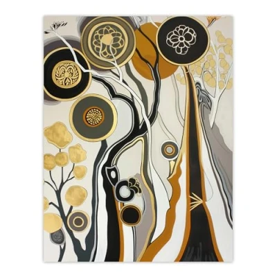 Artery8 Gold Abstract Mandala Tree Wildflowers Forest Living Room Extra Large XL Wall Art Poster Print