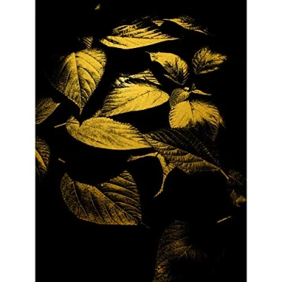 Artery8 Gold Effect Yellow Black Plant Leaves Abstract Flora Large Wall Art Poster Print Thick Paper 18X24 Inch