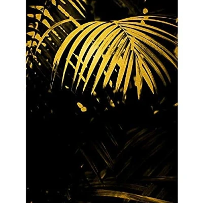 Artery8 Gold Effect Yellow Black Tropical Plant Palm Leaves Unframed Art Print Poster Wall Decor 12x16 inch