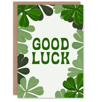 Artery8 Good Luck Card St. Patrick's Day Shamrock Clover Blank For Him Or Her Art Greeting