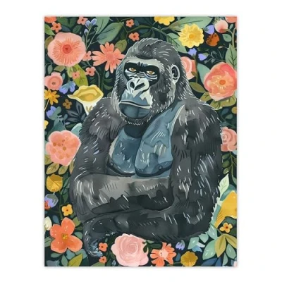Artery8 Gorilla Ape in Floral Jungle Watercolour Portrait Living Room Extra Large XL Wall Art Poster Print