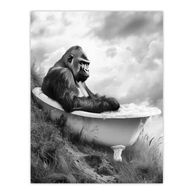 Artery8 Gorilla Bubble Bath Bathtub Black White Surreal Bathroom Toilet Extra Large XL Wall Art Poster Print