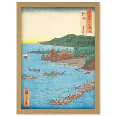 Artery8 Goshiki Beach Awaji Province Utagawa Hiroshige Japanese Woodblock Artwork Framed Wall Art Print A4