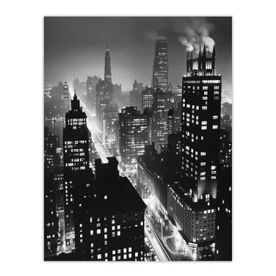 Artery8 Gotham City Black White Cityscape Concept Art Living Room Extra Large XL Wall Poster Print