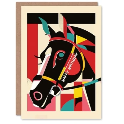 Artery8 Grand National Horse Racing Art Deco Style For Him Man Birthday Card