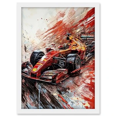 Artery8 Grand Prix Red Race Car Action Shot Paint Splat Artwork Framed A3 Wall Art Print