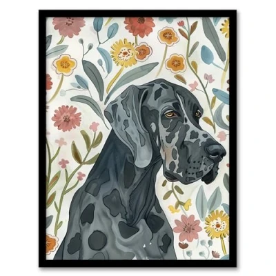 Artery8 Great Dane Pet With Flowers Dog Lover Watercolour Living Room Artwork Framed Wall Art Print A4