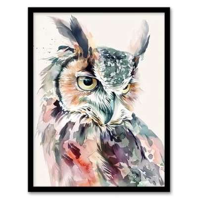 Artery8 Great Horned Owl Portrait Modern Watercolour Living Room Artwork Framed Wall Art Print 18X24 Inch