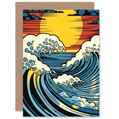 Artery8 Great Wave Comic Book Pop Art Sunset for Him or Her Man Woman Birthday Thank You Congratulations Blank Greeting Card