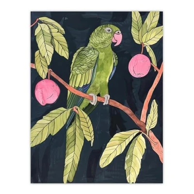 Artery8 Green Parakeet Parrot on Plum Fruit Tree Branch Living Room Extra Large XL Wall Art Poster Print
