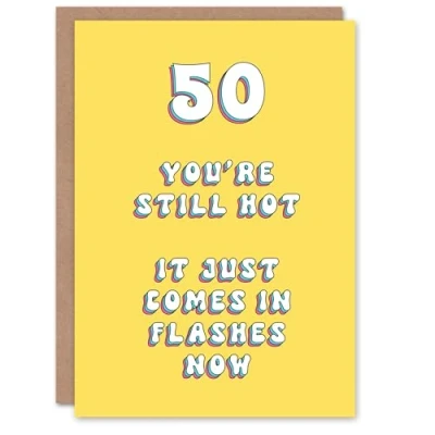 Artery8 Greeting Card 50th Still Hot Flashes 50 Year Old Cheeky Funny For Her Woman Wife Sister Daughter Mum Birthday