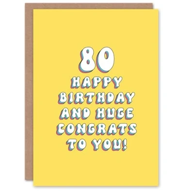 Artery8 Greeting Card 80th Huge Congrats 80 Year Old Bright For Her Woman Wife Gran Mum Sister Birthday