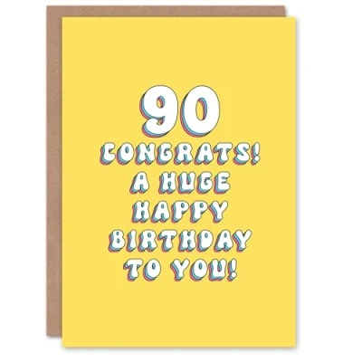 Artery8 Greeting Card 90th Huge Congrats 90 Year Old Bright For Her Woman Wife Gran Mum Sister Birthday