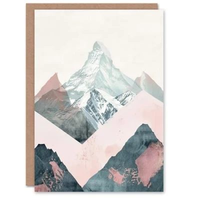 Artery8 Greeting Card Abstract Baby Pink Blue Snowcapped Mountain Range Blank For All Him Or Her Art Birthday