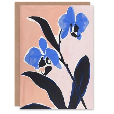 Artery8 Greeting Card Abstract Blue Orchid Flower Floral Oil Painting For Her Woman Birthday