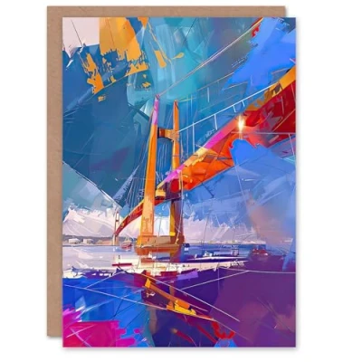Artery8 Greeting Card Abstract Bridge Colourful Palette Knife Painting Blank For Him Or Her Art Birthday