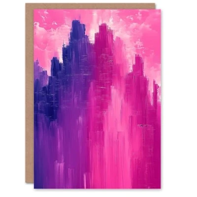 Artery8 Greeting Card Abstract City Skyscrapers Pink Purple Cityscape Blank For Him Or Her Art Birthday