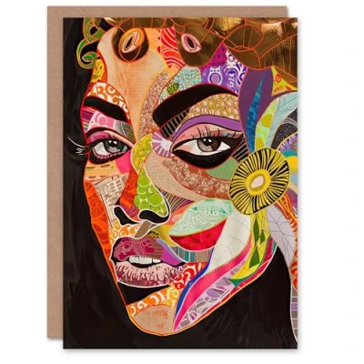 Artery8 Greeting Card Abstract Colourful Woman Portrait Mosaic Artwork Blank For Him Or Her Art Birthday