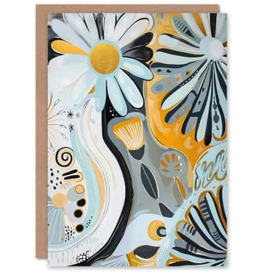 Artery8 Greeting Card Abstract Daisy Wild Flowers Painting Pastels Gold For Her Woman Birthday