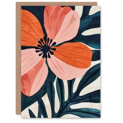 Artery8 Greeting Card Abstract Flower Bloom Coral Pink Blue Floral For Her Woman Birthday