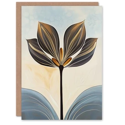 Artery8 Greeting Card Abstract Flower Symmetry Muted Earth Tones Simple Blank For Him Or Her Art Birthday
