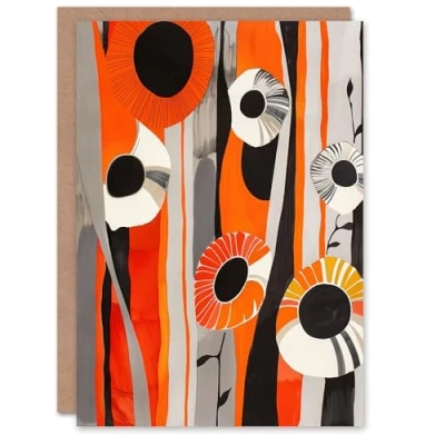 Artery8 Greeting Card Abstract Flowers Orange White Stripes Painting For Her Woman Birthday