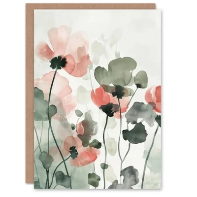 Artery8 Greeting Card Abstract Geranium Flowers Modern Watercolour For Her Woman Birthday