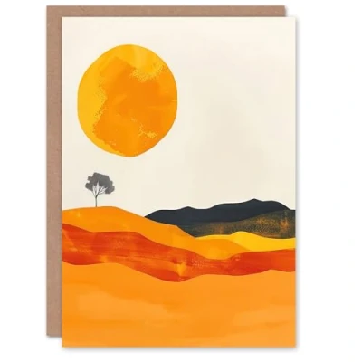 Artery8 Greeting Card Abstract Landscape Lone Tree Bright Boho Painting Blank For Him Or Her Art Birthday