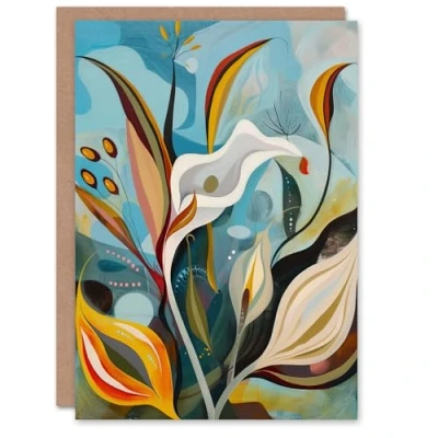 Artery8 Greeting Card Abstract Lily Flowers in Bloom Colourful Spring For Her Woman Birthday