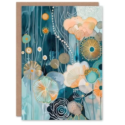 Artery8 Greeting Card Abstract Ocean Flower Garden Artwork Floral Sea For Her Woman Birthday