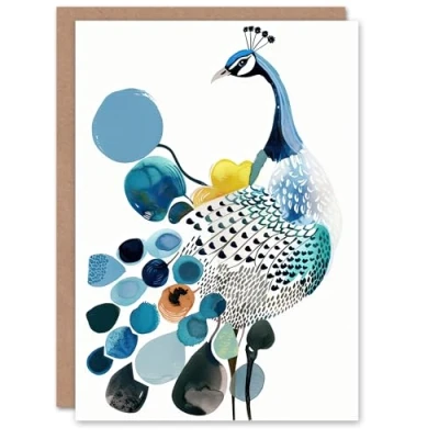 Artery8 Greeting Card Abstract Pattern Peacock Bird Bright Watercolour For Her Woman Birthday