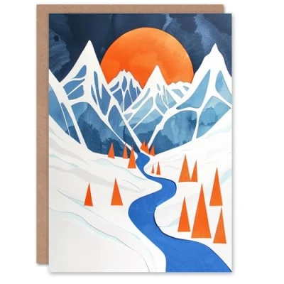 Artery8 Greeting Card Abstract River Mountain Winter Snow Landscape Blank For Him Or Her Art Birthday