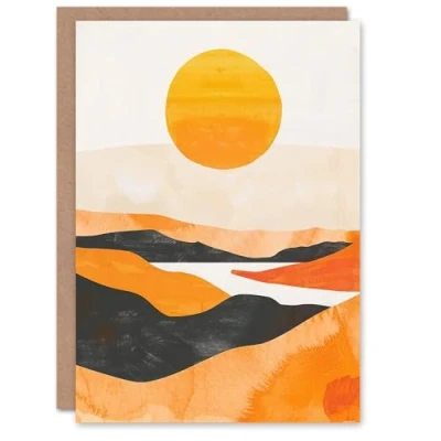 Artery8 Greeting Card Abstract Scottish Highland Landscape Boho Sunset Blank For Him Or Her Art Birthday